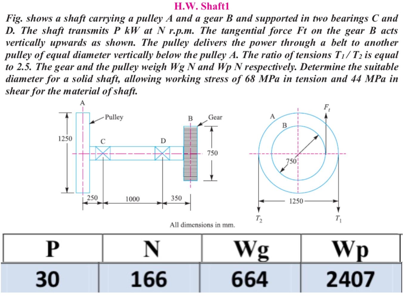 Solved H.W. Shaft1 Fig. shows a shaft carrying a pulley A